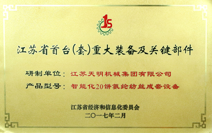 ● 2017年智能化20饼氨纶纺丝成套设备荣获江苏省重点推广应用的新技术新产品